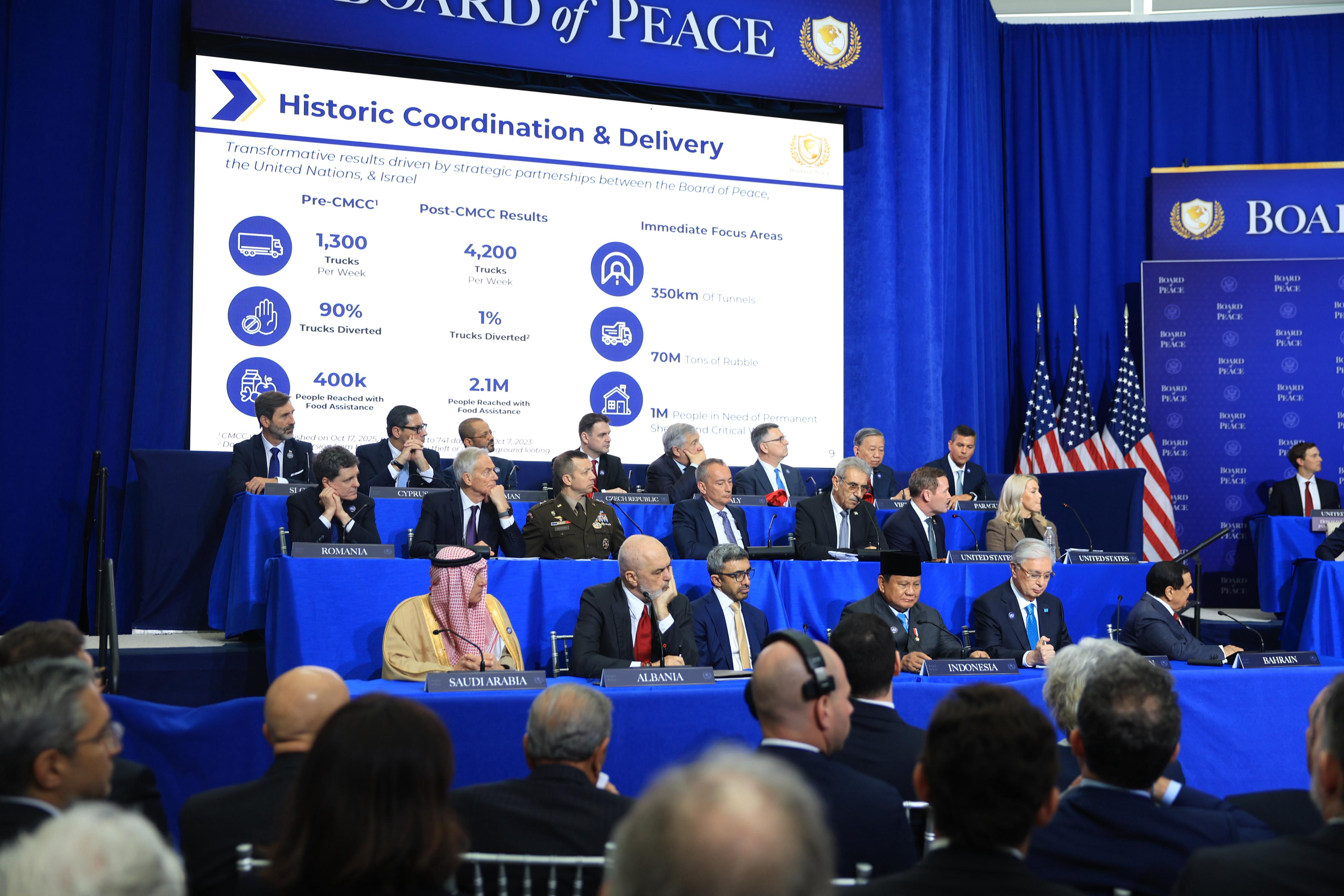 Dalam rapat perdana BoP, Presiden RI Prabowo Subianto menegaskan komitmen Indonesia mendukung perdamaian dunia, khususnya di Gaza, Palestina.