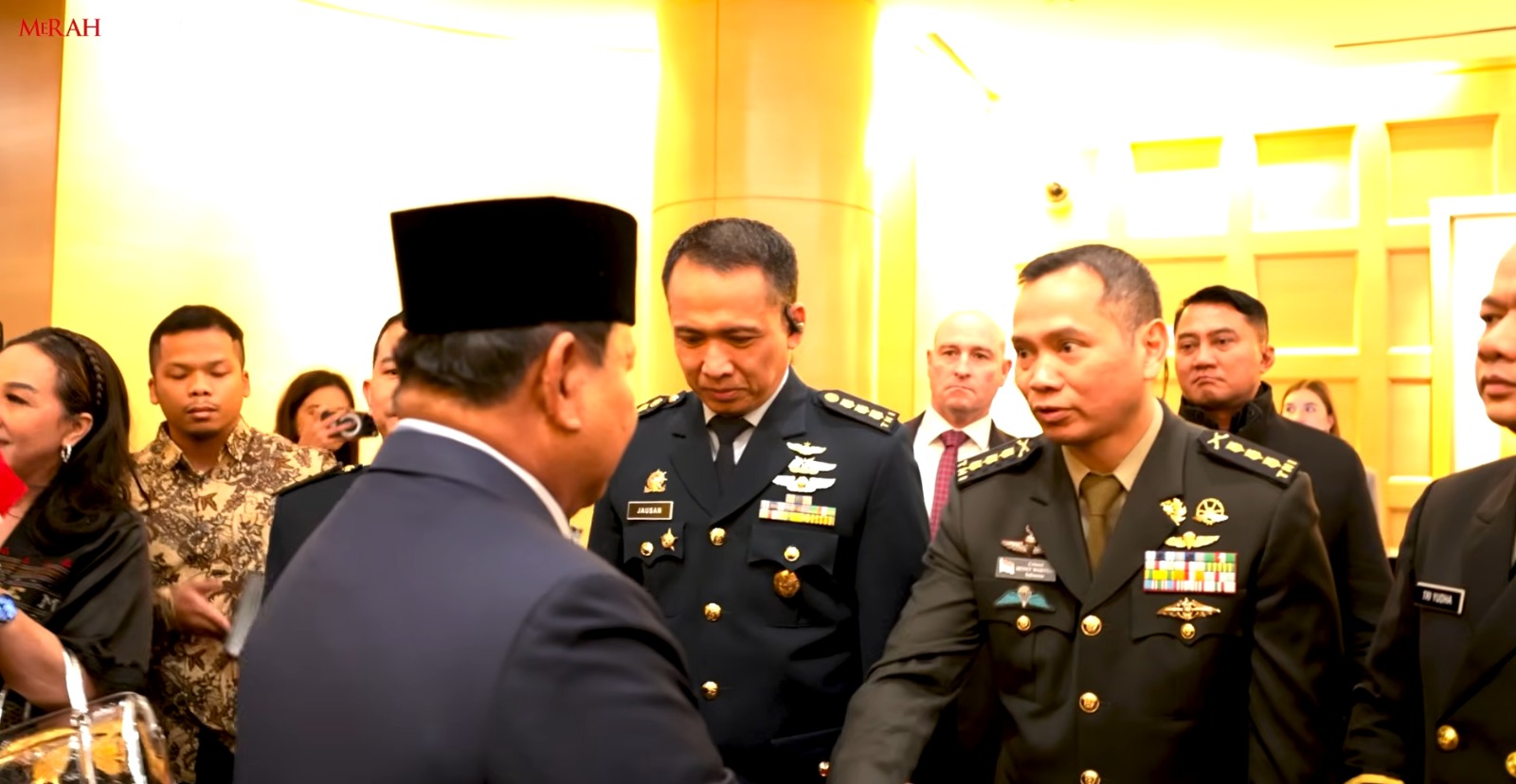 Sambil berjalan menuju area lift, Presiden Prabowo menyalami satu per satu warga yang berjejer rapi. Beliau juga memberikan perhatian khusus kepada sejumlah perwira TNI yang sedang menempuh pendidikan di Amerika Serikat.