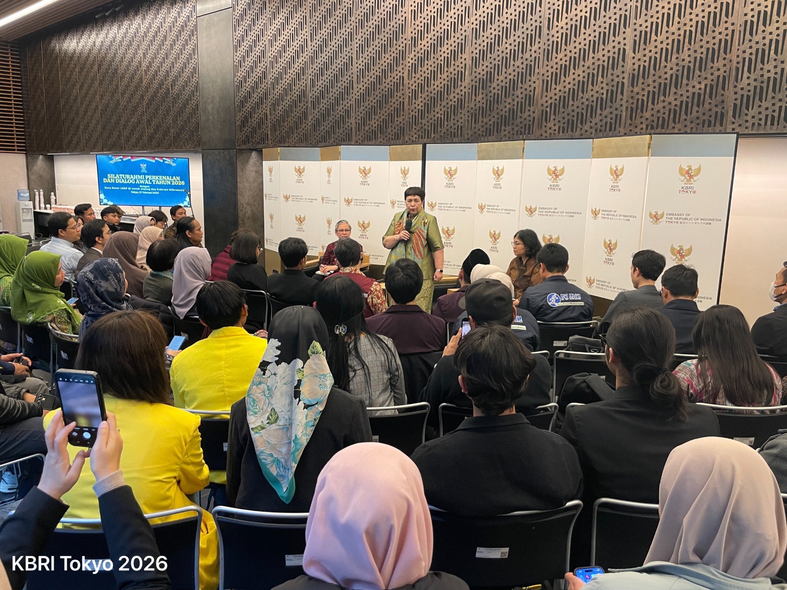 Duta Besar Republik Indonesia untuk Jepang dan Federasi Mikronesia, Nurmala Kartini Sjahrir, menggelar Dialog Awal Tahun bersama kelompok masyarakat Indonesia di Gedung KBRI Tokyo, Jumat, 27 Februari 2026. Kegiatan ini diikuti 178 komunitas Indonesia yang terdiri atas kelompok agama, profesi, perempuan, serta berbagai komunitas lain.
