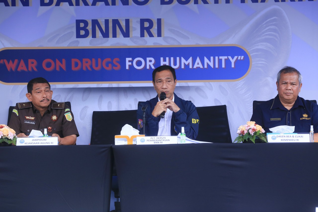 Badan Narkotika Nasional Republik Indonesia (BNN RI) menggelar pemusnahan barang bukti hasil tindak pidana narkotika dari pengungkapan lima kasus dengan jumlah tersangka sebanyak 10 orang. Barang bukti yang dimusnahkan mencapai 102.369,90 gram, yang terdiri dari 100.531,70 gram sabu serta 889 gram ganja. Selain itu, turut dimusnahkan 990 mililiter cairan MDMB-4EN-PINACA dan 953,30 gram padatan MDMB-4EN-PINACA.